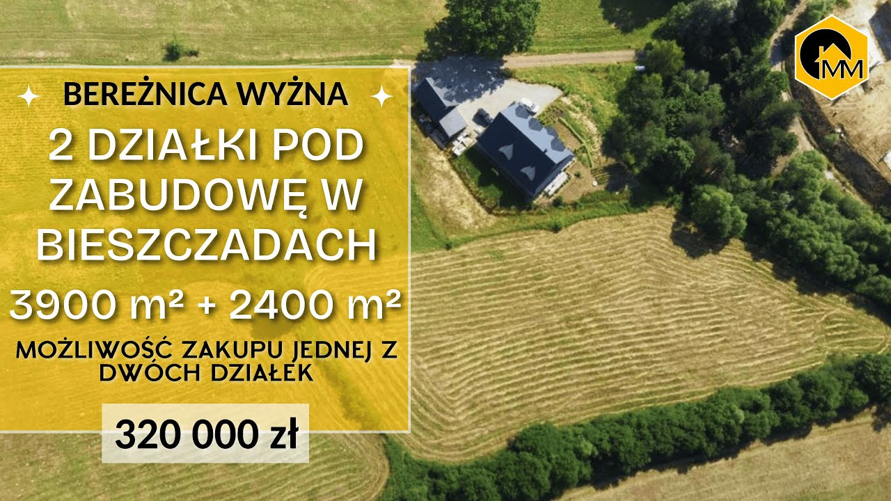 Do sprzedania dwie działki pod zabudowę o łącznej powierzchni 63 ary, położona w Bieszczadach w miejscowości Bereżnica Wyżna, gmina Solina. Działka posiada warunki zabudowy na domy mieszkalne jednorodzinne. Działka z pięknym widokiem, dzięki jej wzniesieniu. Wymiary działki to ok. 80 m. x 50 m. *UWAGA możliwość zakupu dwóch oddzielnych działek: 39 ar - 220 000 zł. i 24 ary - 135 000 zł. (łącznie: 63 ar.).Prąd, kanalizacja (w projekcie - realizacja przyszły rok) do pociągnięcia z działek sąsiednich. Znajdują się tam budynki jednorodzinny. Dojazd do działki drogą gminną. To wspaniała lokalizacja, gdzie można się cieszyć ciszą i spokojem, który jest coraz mniej spotykany na terenach turystycznych jakimi są Bieszczady.